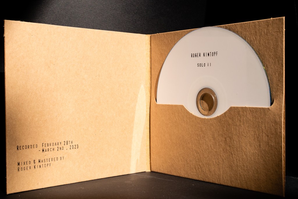 This is a limited Edition of 50 CDs of the album „solo“ by Roger Kintopf. Each copy is handmade and comes with an individual design! The CDs are packed in a sustainably produced digifile made of recycled paper.